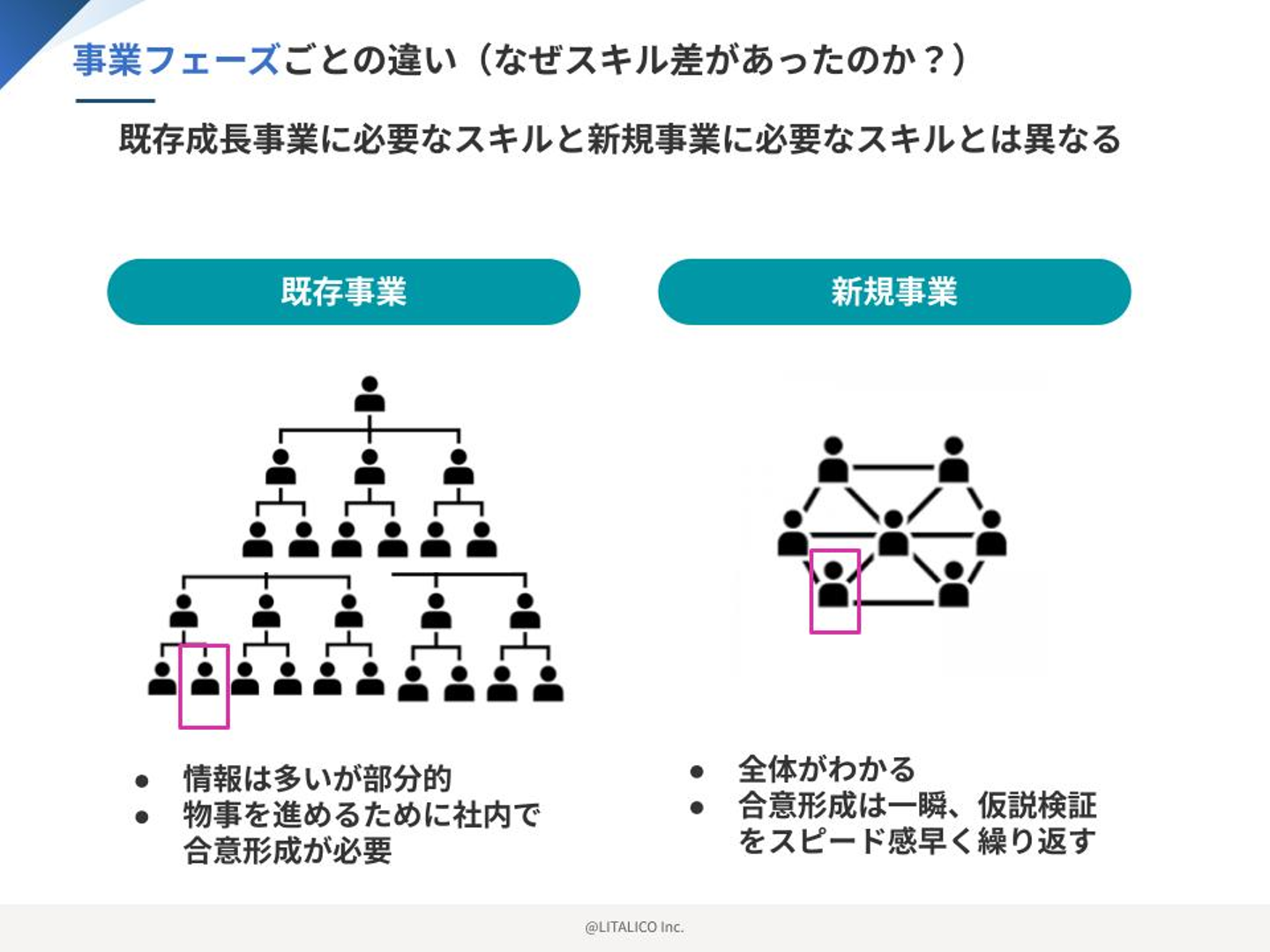 同じ社会人4年目で、なぜこれほどのスキル差が生まれていたのか。矢島は、その理由を両社の「事業戦略」と「組織フェーズ」の違いにあると分析します。
