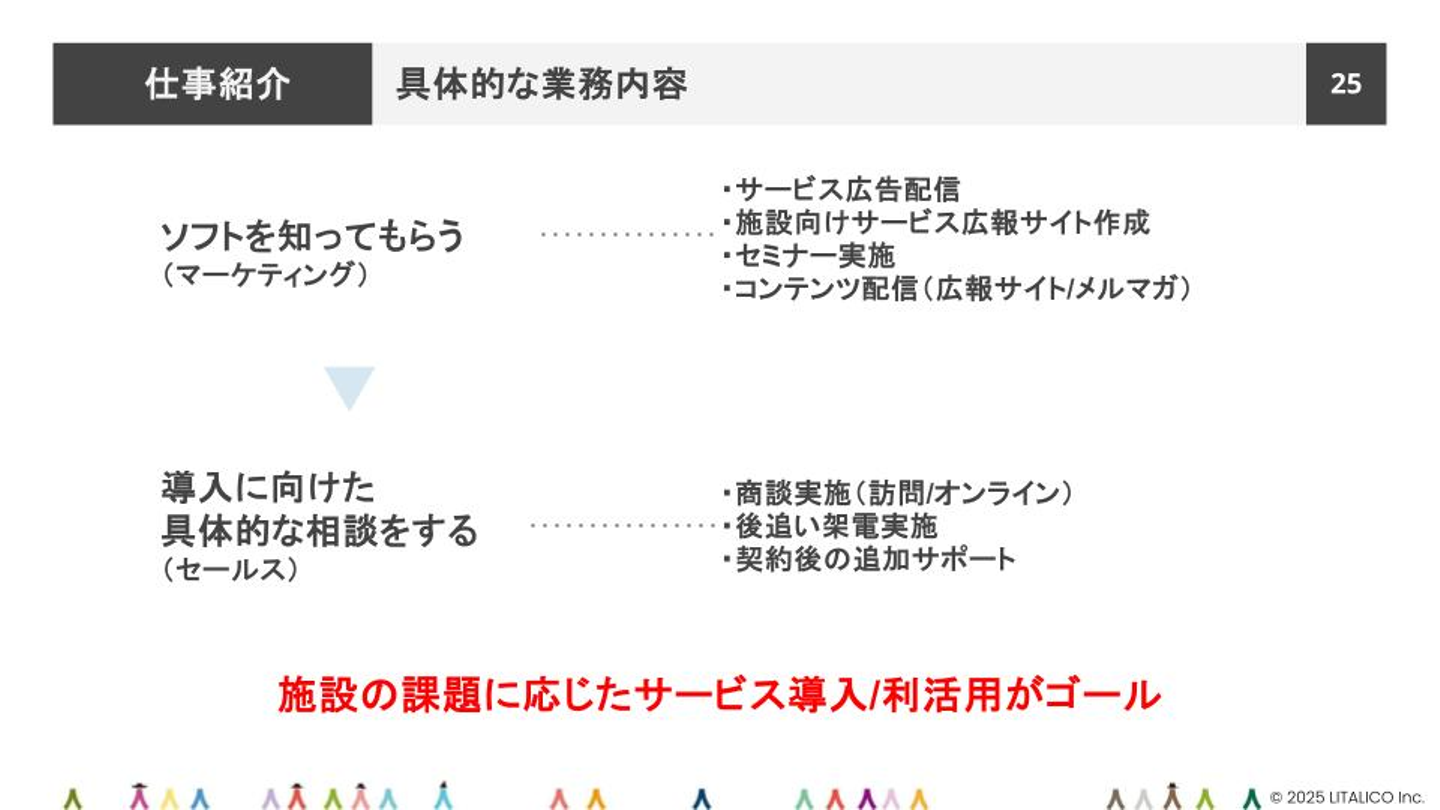最後に井関が伝えたかったのは、「心から共感できるプロダクト」を選ぶことの大切さでした。仕事で壁にぶつかった時、最後に自分を支えてくれるのは「この課題をなんとかしたい」という素直な気持ちだからです。もしあなたが、ビジネスを通じて誰かの人生を支えたいと感じているなら、LITALICOはその想いをのびのびと発揮できる場所になるはずです。