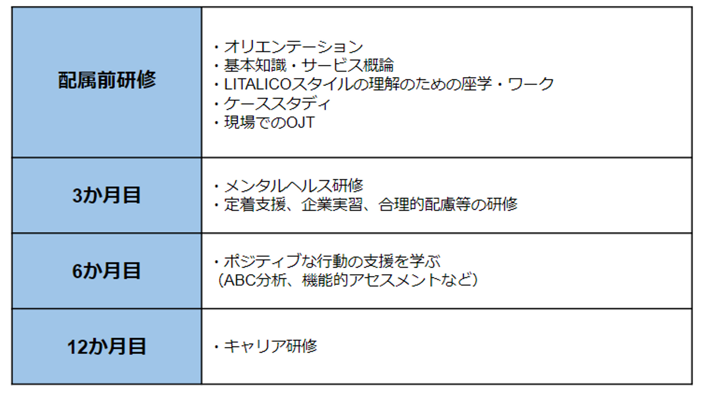 ▼LITALICOワークスの入社後1年間の研修 ※22年12月時点