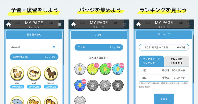 英語学習アトラクション「DIGITAL “SPOGLISH”」 では、体験し、学習した履歴をスマホから確認できるようになり、子供たち一人一人の学習状況に応じて体験が変わるようになっています。