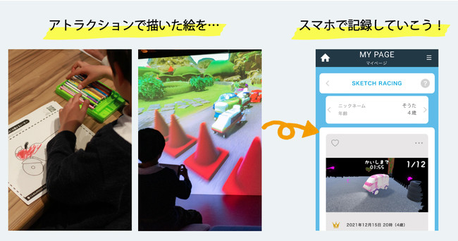 現在パークでは、塗り絵アトラクションで描いた絵をシャリングに紐付けて保存ができたり、