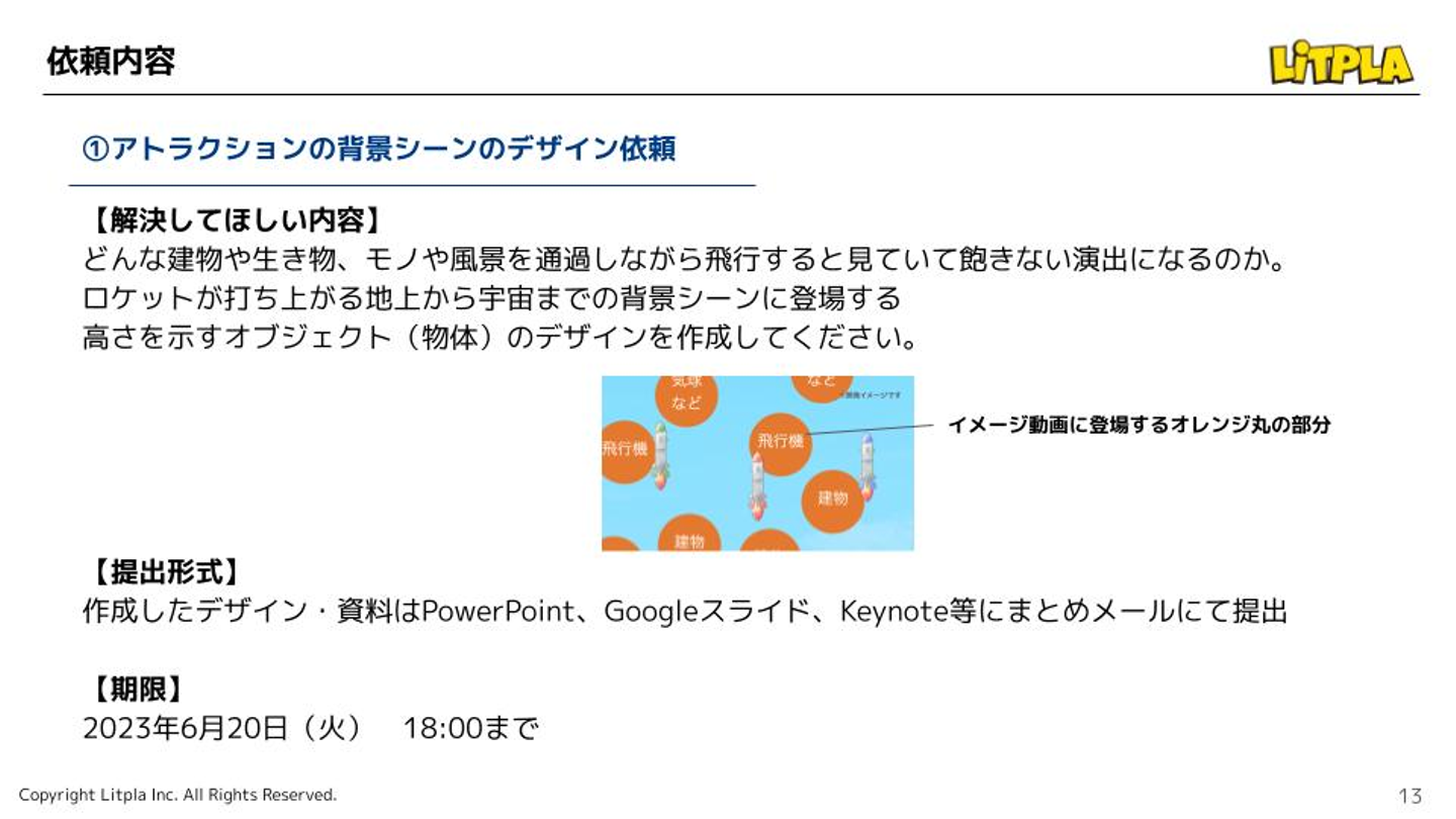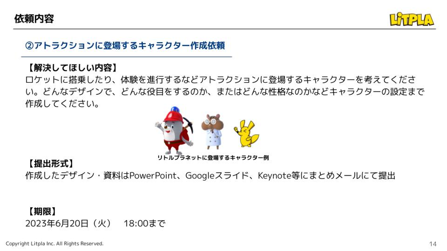 まずは株式会社リトプラがどのような会社か、どのような想いでアトラクション開発をしているかを紹介したうえで、今回の依頼内容を説明しました。