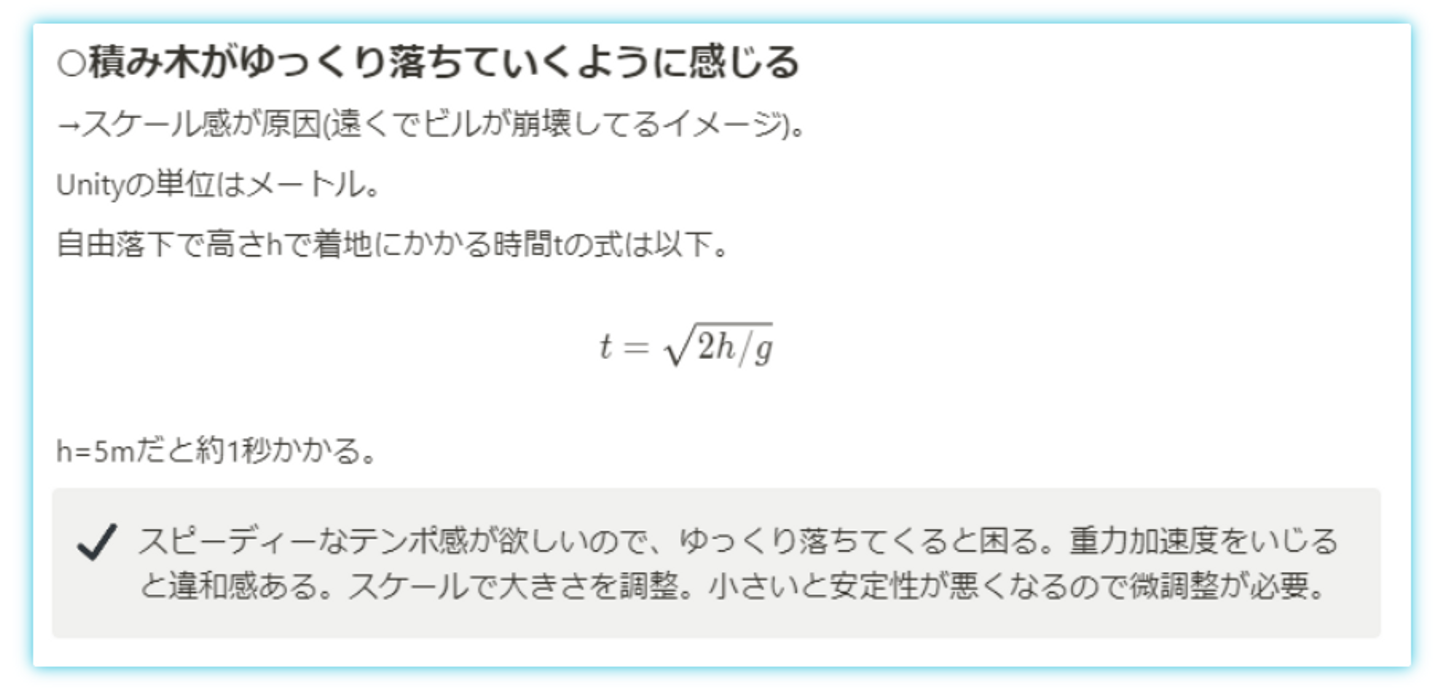実際にだるま落としを遊んだことのある方は想像がつくかと思いますが、例え8個であっても崩さず打ち抜くのは難しすぎました。私たちが求めていた崩れそうなハラハラ感と連続で打ち抜く爽快感の両方を実現するには、やはり実際の物理条件では不可能でした。