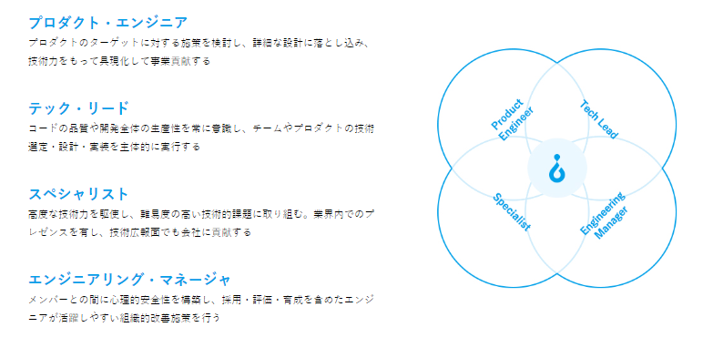 この4つのロールはどれか1つを選ばなければならないというわけではなく、2つ以上の掛け合わせで自分にあったキャリアを考えることが出来る仕組みになっています。