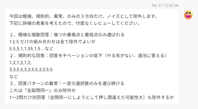 定量調査のノイズ回答定義のレビュー依頼プロンプト