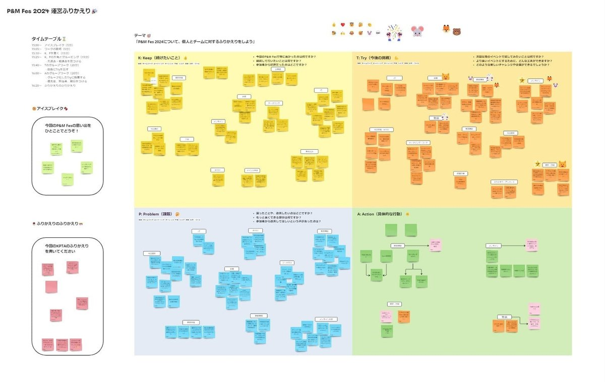 開催後には運営の全員でmiroを使って、KPTAのフォーマットでふりかえり実施しました。