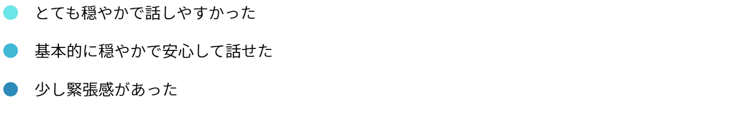 リビングハウスでの面接は基本的にとても和やかで、話しやすい雰囲気の中行われることが上のグラフからも見て取れます!