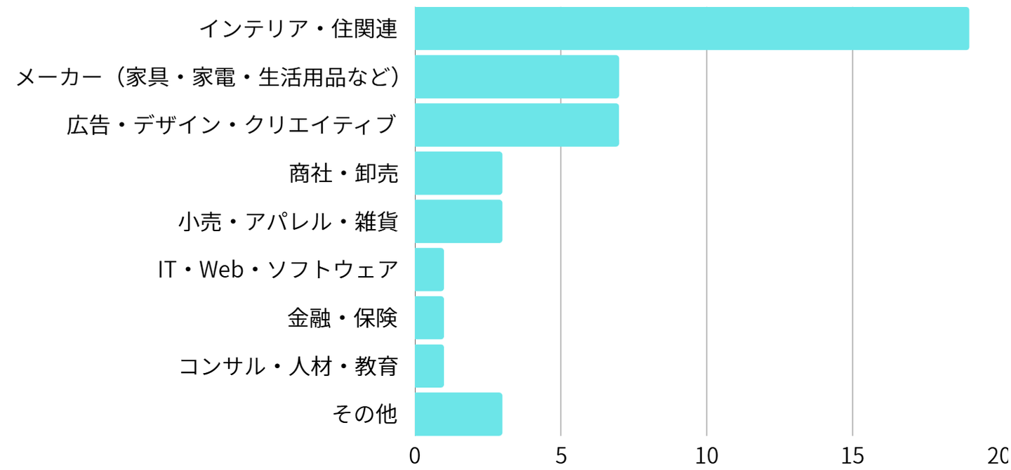業界に関しては、「インテリア・住関連」が圧倒的に多い結果となり、
