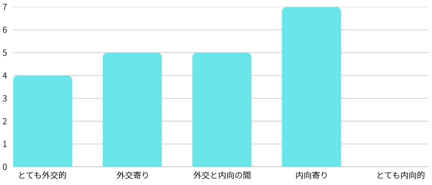最も多かった回答は、「どちらかと言えば内向的である」という回答となりましたが、全体を見ると自分は外交的であると感じている人が多いようです!