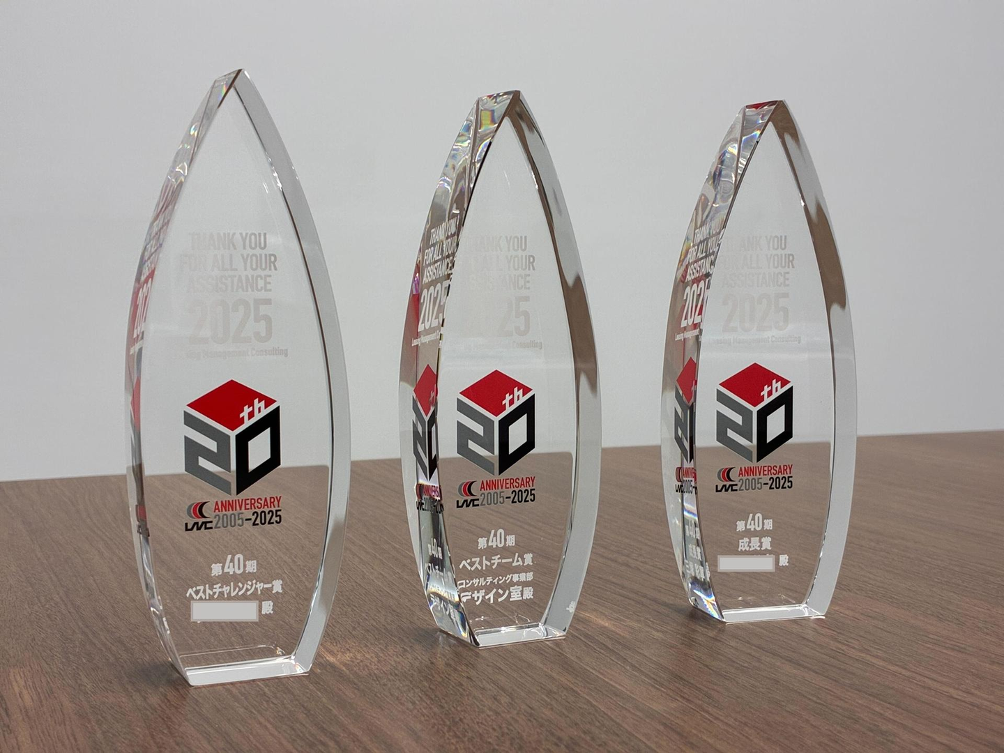 このロゴを使い、先日の社員総会で発表した受賞者へお渡しするトロフィーを制作しました♪