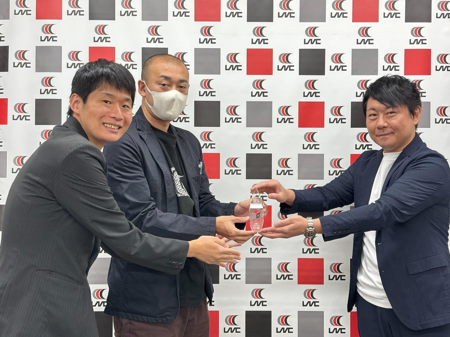 先ほどご紹介したトロフィーを渡すため、先日表彰式を実施しました!表彰式の場を借りてこの記念品やパーカーを社員に配布いたしました。