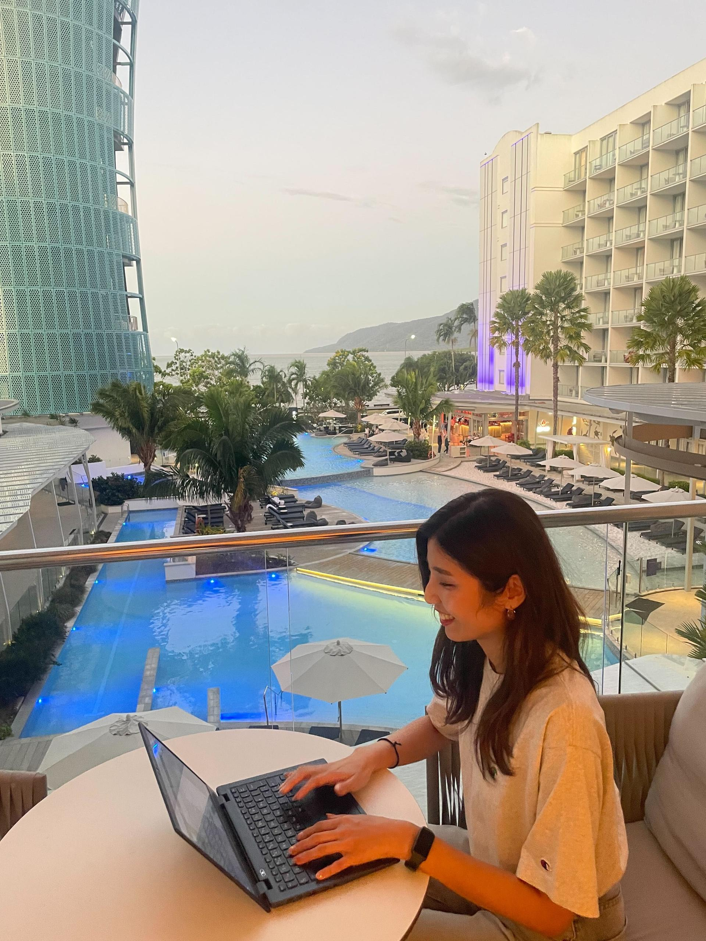 また、オーストラリアの方が日本より1時間進んでいたので始業までの時間を活用してコアラを抱っこしたり、海辺を散歩したり、朝カフェを満喫したりetc…朝から有意義な時間を過ごすことができました。