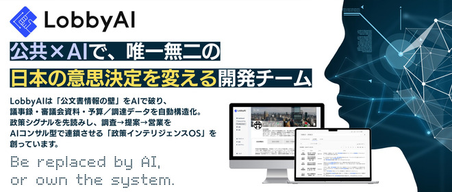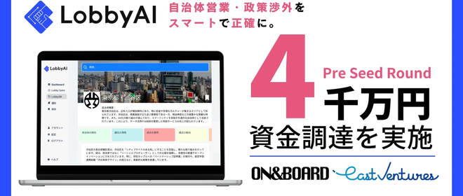 「AIのチカラで企業の挑戦を、政策とともに前へ。」を掲げるLobbyAIは、ON&BOARD投資事業有限責任組合、East Venturesより4,000万円の資金調達を実施。