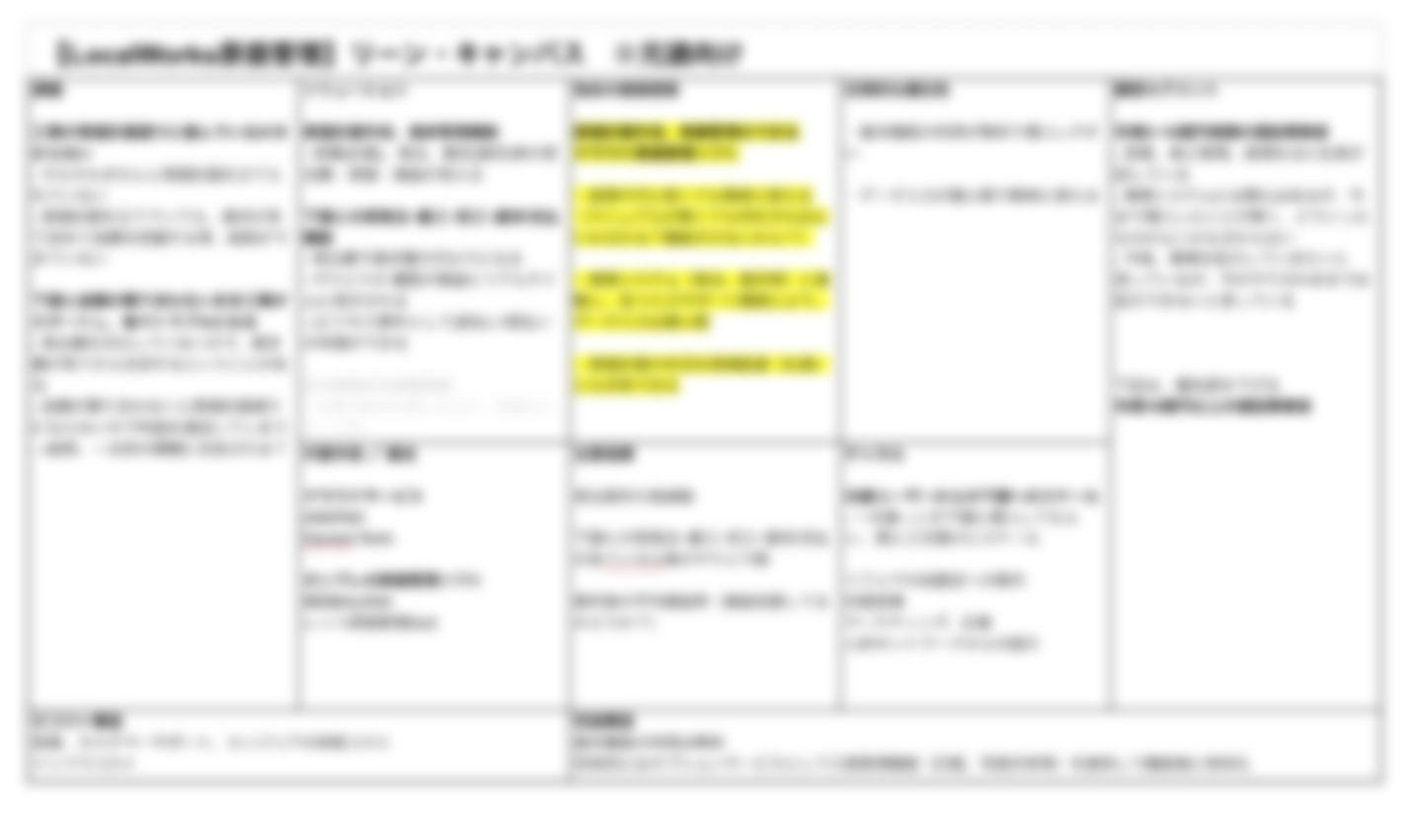 ※リーン・キャンバスとは、リーン・キャンバスを設計したアッシュ・マウリャの著書「Runnnig Lean」で、ビジネスの課題、顧客セグメント、独自の価値提案など9つの要素を1ページに盛り込んだビジネスモデル図を意味します。