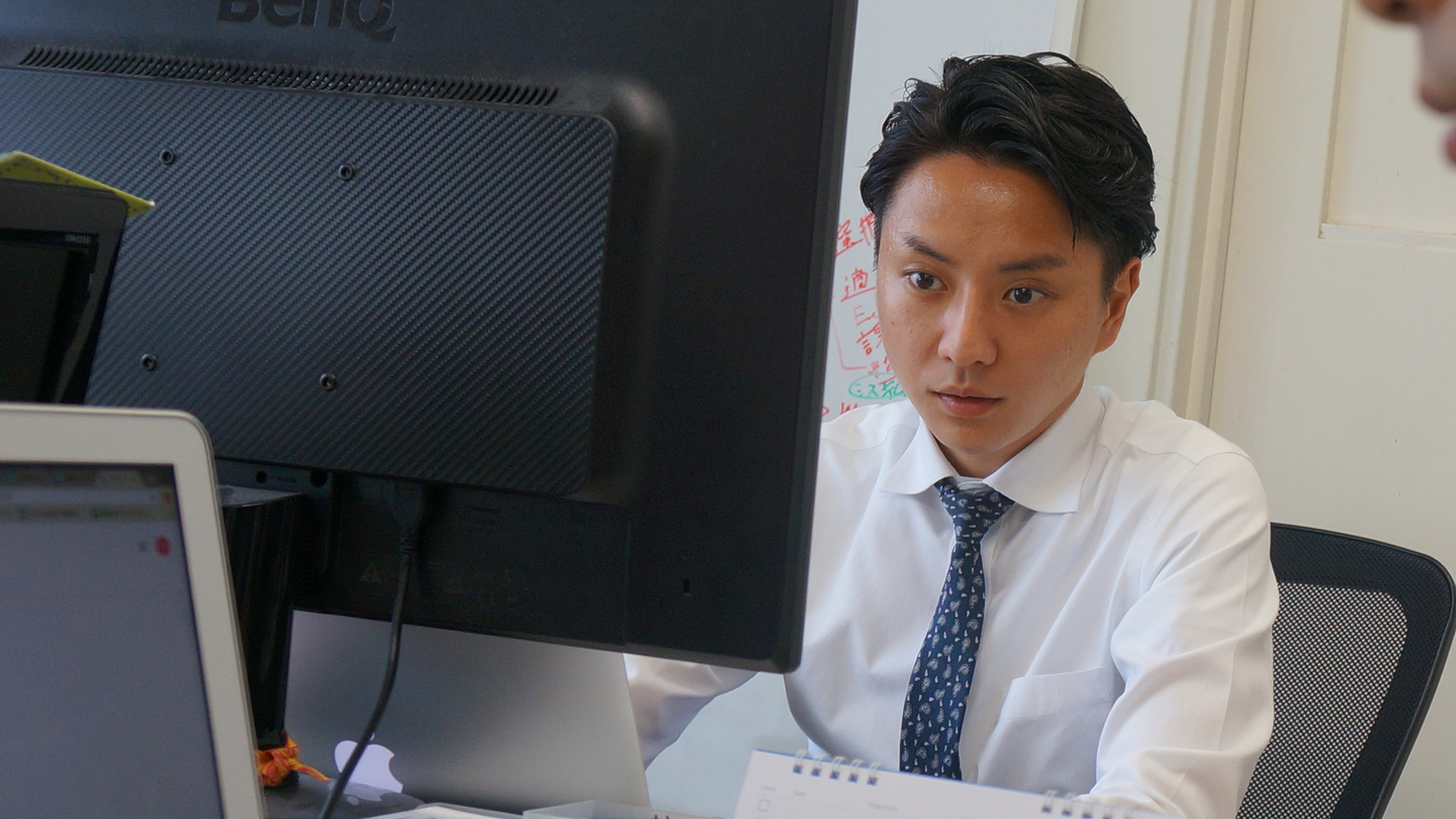放心状態でモニターに向き合っている営業のKさんを発見!これは事件のにおい!!