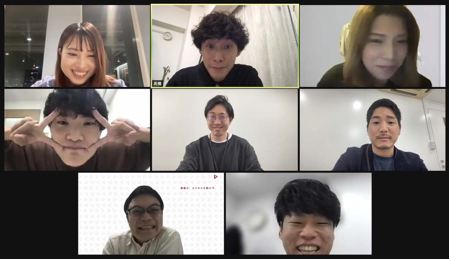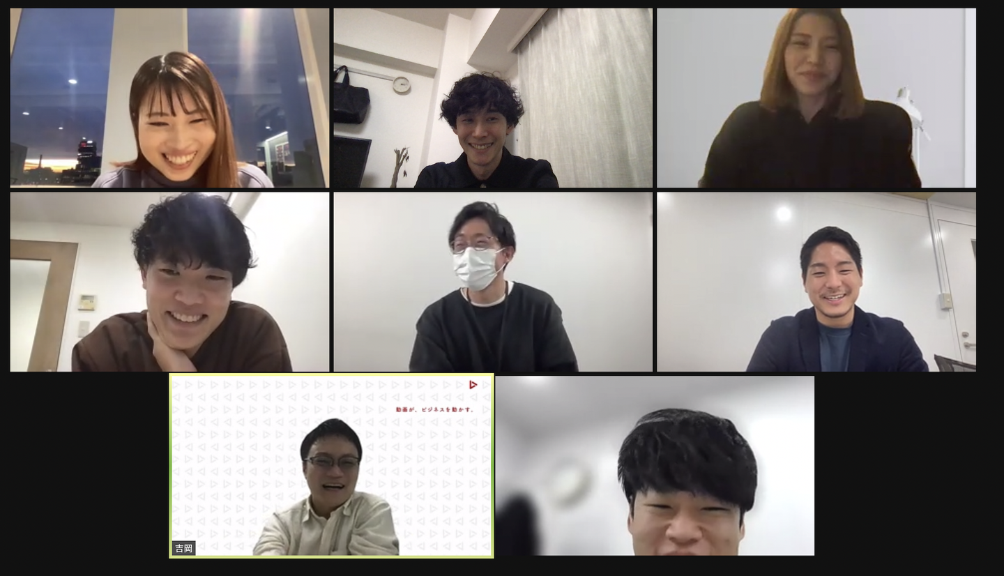 新卒入社2名、中途入社5名の計7名。男性6名、女性1名。7名の平均年齢は30歳。マネージャー吉岡(2014年新卒入社)、チーフ瀧口(2016年新卒入社)の他、多彩なキャリアの持ち主が集まる。専門領域は「動画×HR」。※2021年12月時点