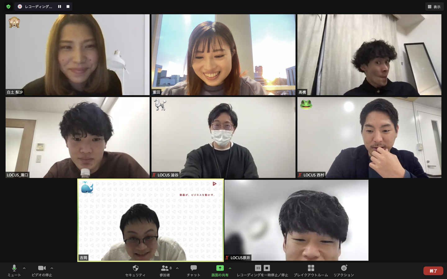 吉岡:あとは、面接などでもLOCUSのことはよく「動物園みたいだ」と言ってます。性格の面で個性豊かであるというのもそうなんですが、様々な業界から転職してきた方が在籍しており、各々の経験やノウハウを発揮しながら活躍しているメンバーが多い気がします。ユニークで個性の強い人たちが集まったチームという感じですね。