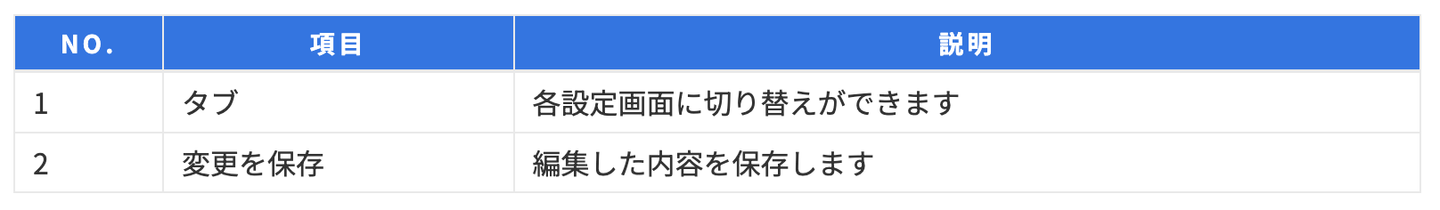 このプラグインでは、設定内容をわかりやすく整理するために、管理画面内に複数のタブを設けています。