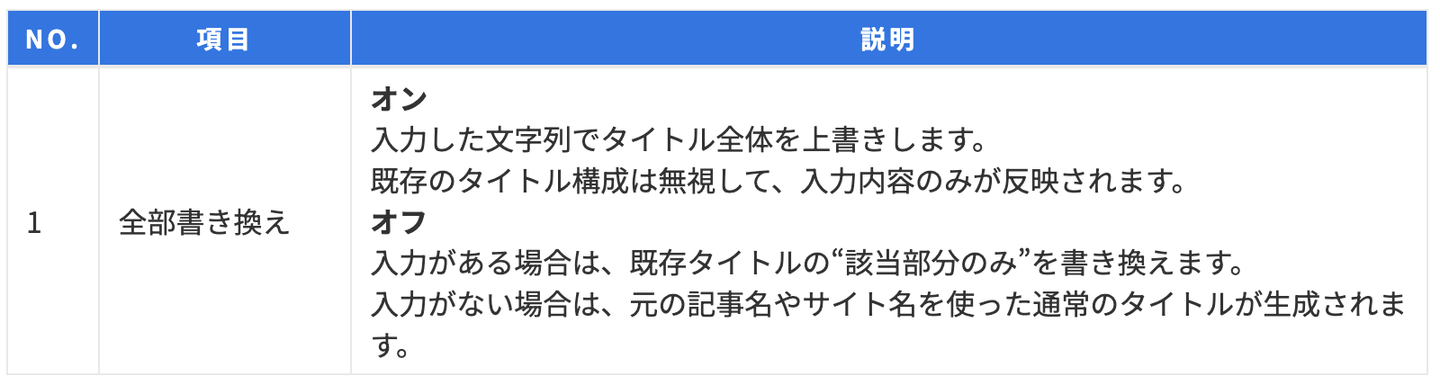 ※【1】の「全部書き換え」機能は、メタタイトル・メタディスクリプション・メタキーワード、各フィールドで共通して利用できます。