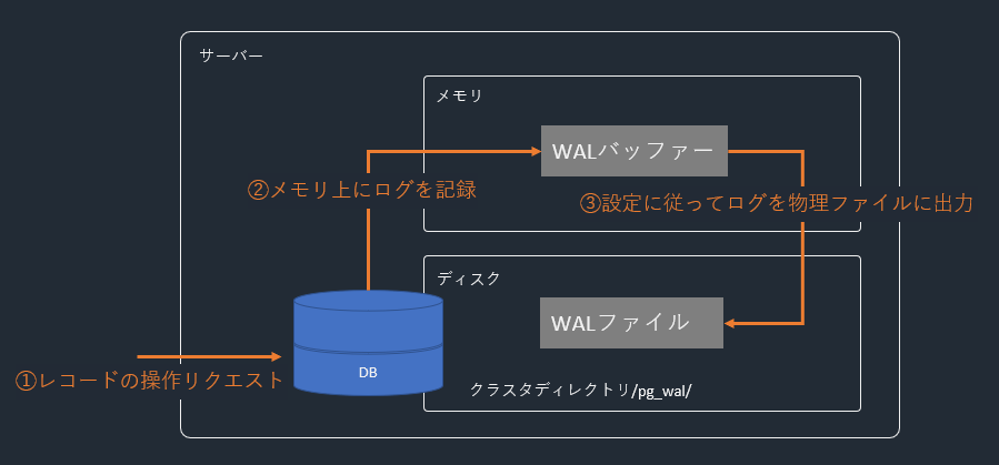 PostgreSQLにはWAL(Write Ahead Log)というログが存在します。