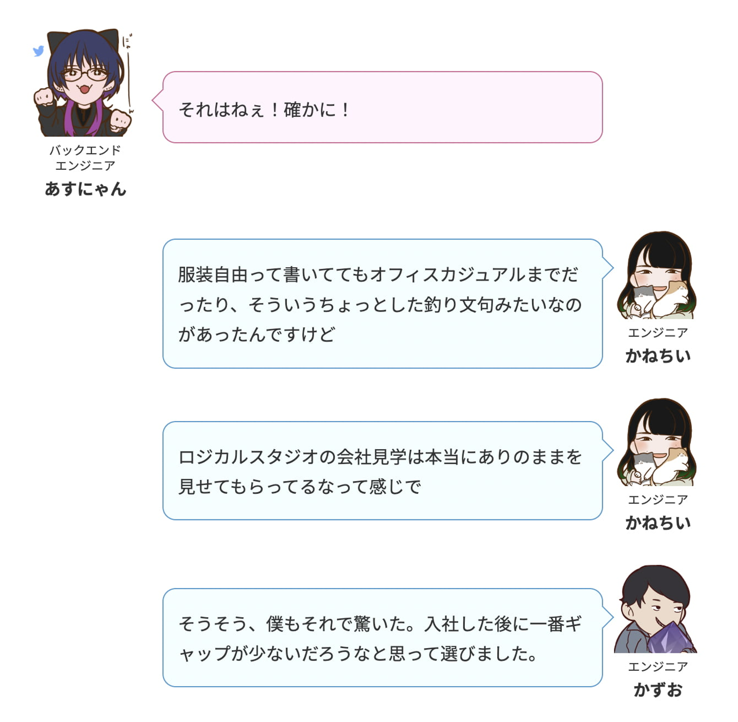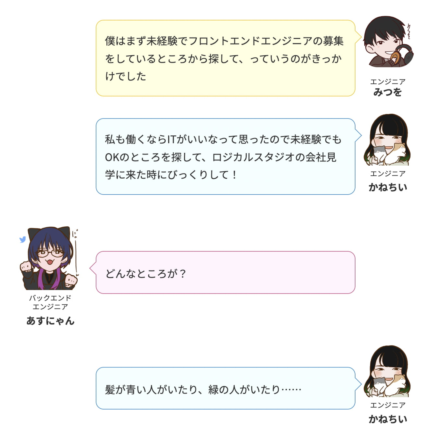 株式会社ロジカルスタジオFollowhttps://www.logical-studio.com大阪府FollowHomeAbout usMembersStoriesJob postings CROSS TALK★ルーキー座談会3 石丸明日菜 Other engineer on 2022-07-29 CROSS TALK★ルーキー座談会2 | 株式会社ロジカルスタジオ 即戦力募集!最新技術を追い求めるフロントエンドエンジニアをWanted! ロジカルスタジオは、テクノロジーとデザインの視点からクライアントの課題解決をめざす、大阪のクリエイティブプロダクションです。 ... 【Q1 自己紹介】【Q2 ロジカルスタジオを選んだ理由、好きなところは?】【Q3 学生から社会人になった感想は?】【Q4 最近ハマっていることはある?】【Q5 今後ロジカルスタジオでやっていきたいことは?】インターン、始めました。ご応募はこちらから↓ インターンシップ 2025年卒!急成長の会社でスペシャリストを目指すインターン生募集!! ◆『技術のロジカルスタジオ』 システムに強いクリエイティブプロダクション 当社は、ソフトウェア開発会社として培った技術力を強みにディレクションからデザイン、システム開発、コーディング、メンテナンスまでワンストップで請け負うクリエイティブプロダクションです。 イラスト・グラフィック・動画制作などのクリエイティブから、データベースが絡むシステム構築まで幅広くカバーできる強みを生かし、さらなる業務拡大を目指しています。 ◆コーポレートサイト https://logical-studio.com/ Invitation from 株式会社ロジカルスタジオ If this story triggered your interest, have a chat with the team? Want to Visit CROSS TALK★ルーキー座談会3 石丸明日菜 株式会社ロジカルスタジオ / Other engineer 新卒 エンジニア インタビュー Web制作 ルーキー 5 Likes Share 5 Likes
