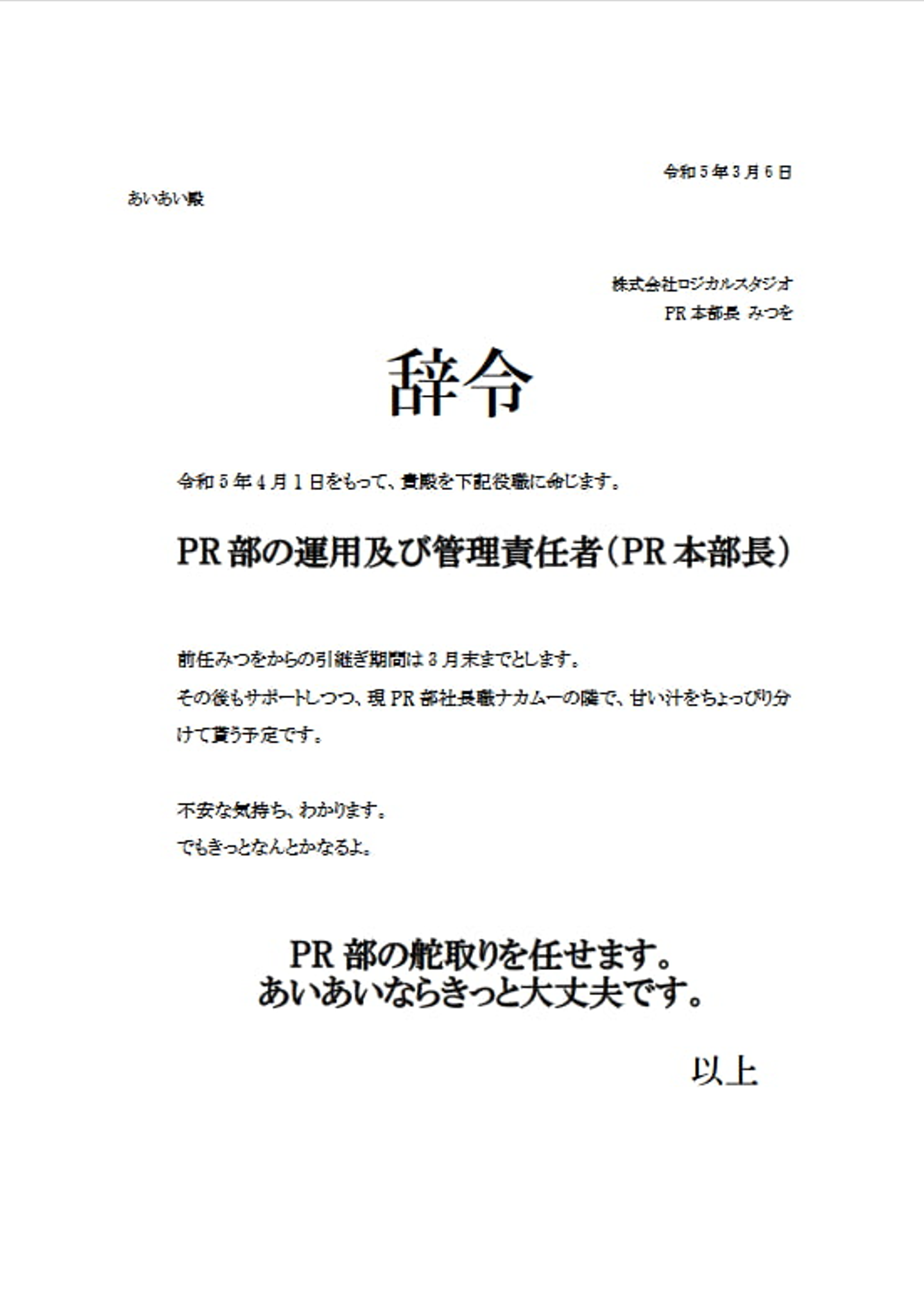 「次期PR部長をお任せできたらなと!」
