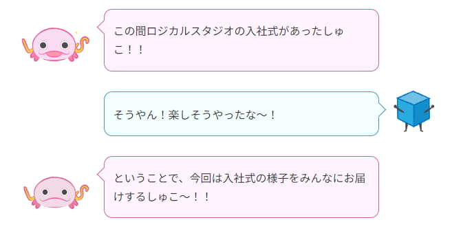 弊社マスコット キャラクター カール 弊社マスコット キャラクター ロージー わ、忘れてたわけではないしゅこ。 忘れたふりしゅこ。 というわけで、今日は 入社式 の様子を覗いてみるしゅこ! ↓昨年の入社式の様子はこちら↓ 2021年度 ロジカルスタジオ入社式を開催しました! 〜ロジカルパレード編〜 どうやら今回の入社式のテーマは 「自分の好きなものを身に纏う・持ってくる」 らしいしゅこ! それでは、2022年度入社式を初めていきたいと思います! フロントエンドエンジニア いっちー フロントエンドエンジニア