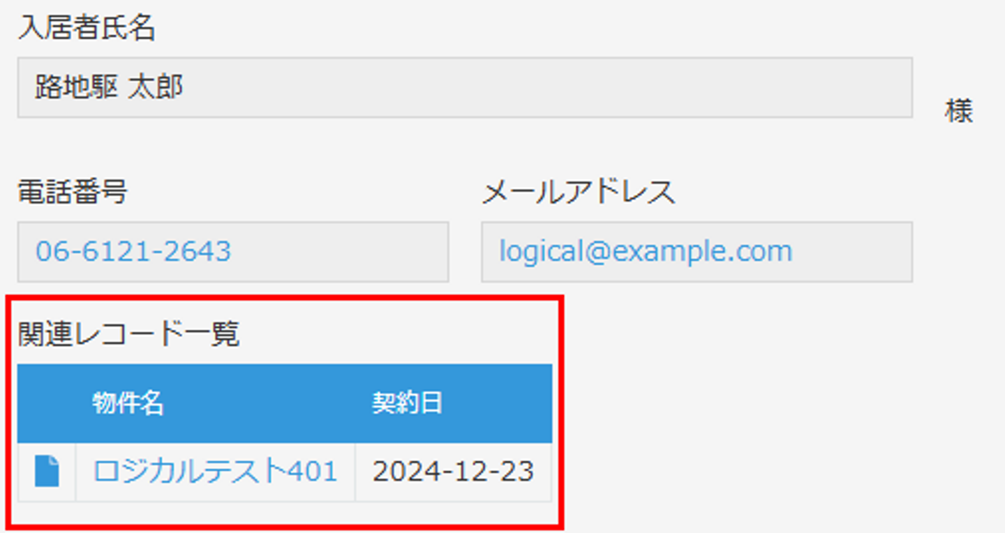 例えば、入居者情報は入居者管理アプリ、賃貸契約情報は契約管理アプリといったように別々のアプリで管理していても、契約管理アプリの情報を入居者管理アプリに表示させることができます。