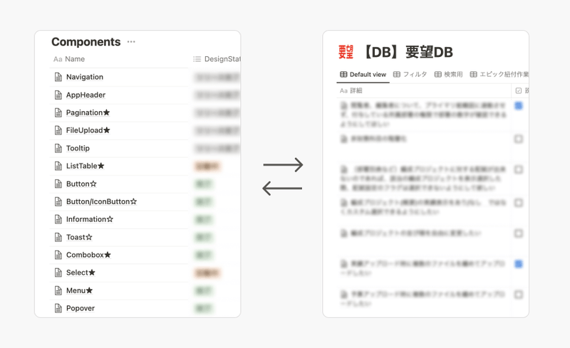 ログラスではコンポーネントのカタログリストをNotionで一元管理しています。Storybookで管理していく方法もあったのですが、デザイナーがカジュアルに編集できて、全社員がアクセスしやすい環境でまずは始めようということでNotionで作り始めました。ステータス管理や担当者管理もしやすく効率的に進めることができました。