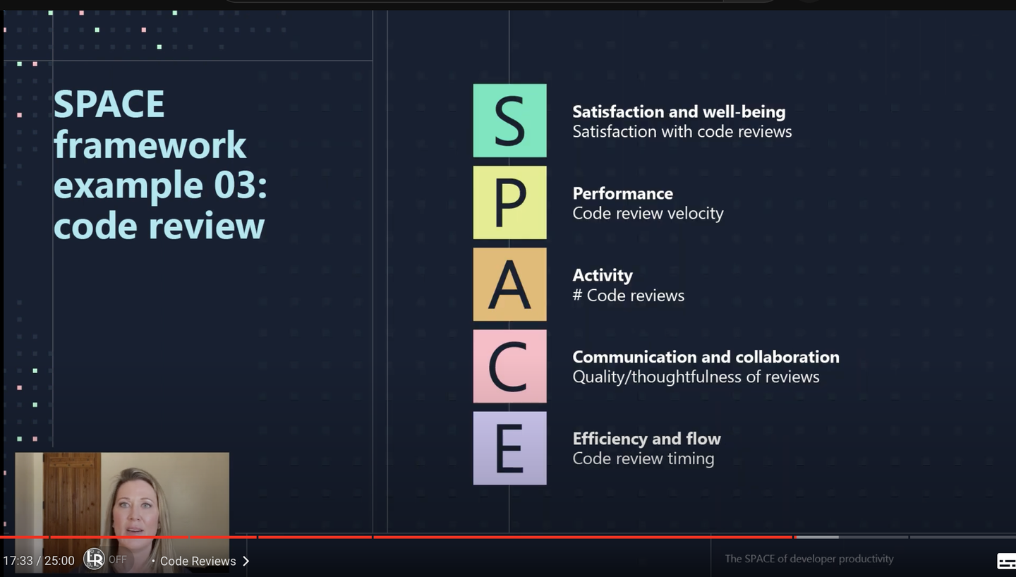 Introducing Developer Velocity Lab to improve developers’ work and well-being | OD532ではCode ReviewをSPACEで考える例も紹介されており、個人的にはこのように特定の何かに対してメトクスでの計測や改善を検討する際に、SPACEで捉えてみるのもしっくりくる使い方だと感じています。