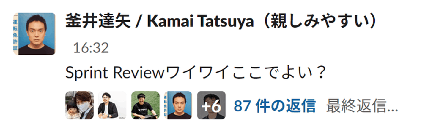 スプリントレビューは基本的に発表者のエンジニアとレビュアーのCSが話すことが多くなる会議体ですが、ログラスにはスプリントレビューに限らず、会議体があるとSlackのスレッドでワイワイする文化があります。