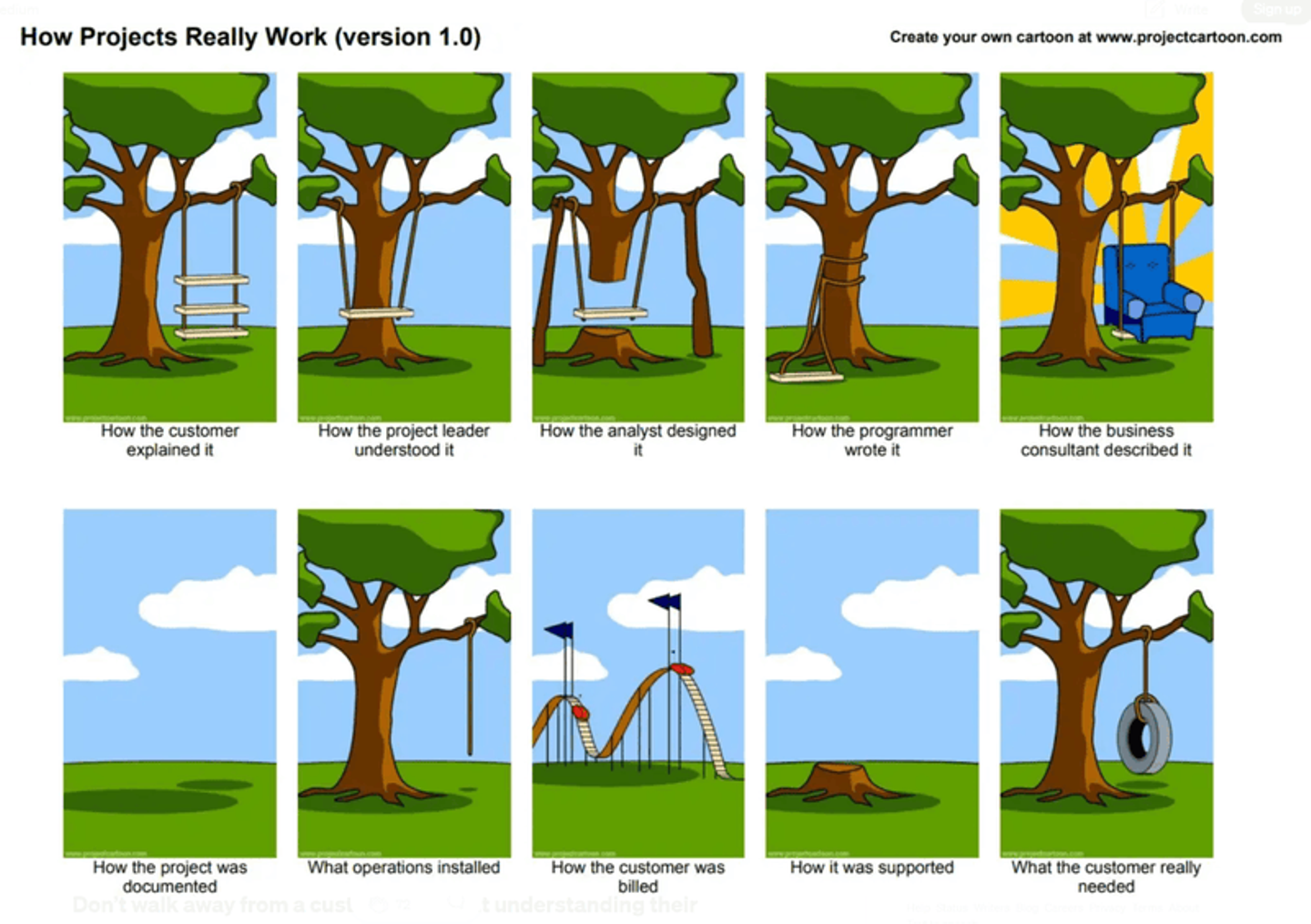有名過ぎるネットミームですが、システム開発の現場では以下の画像のようなことがよく起こります。