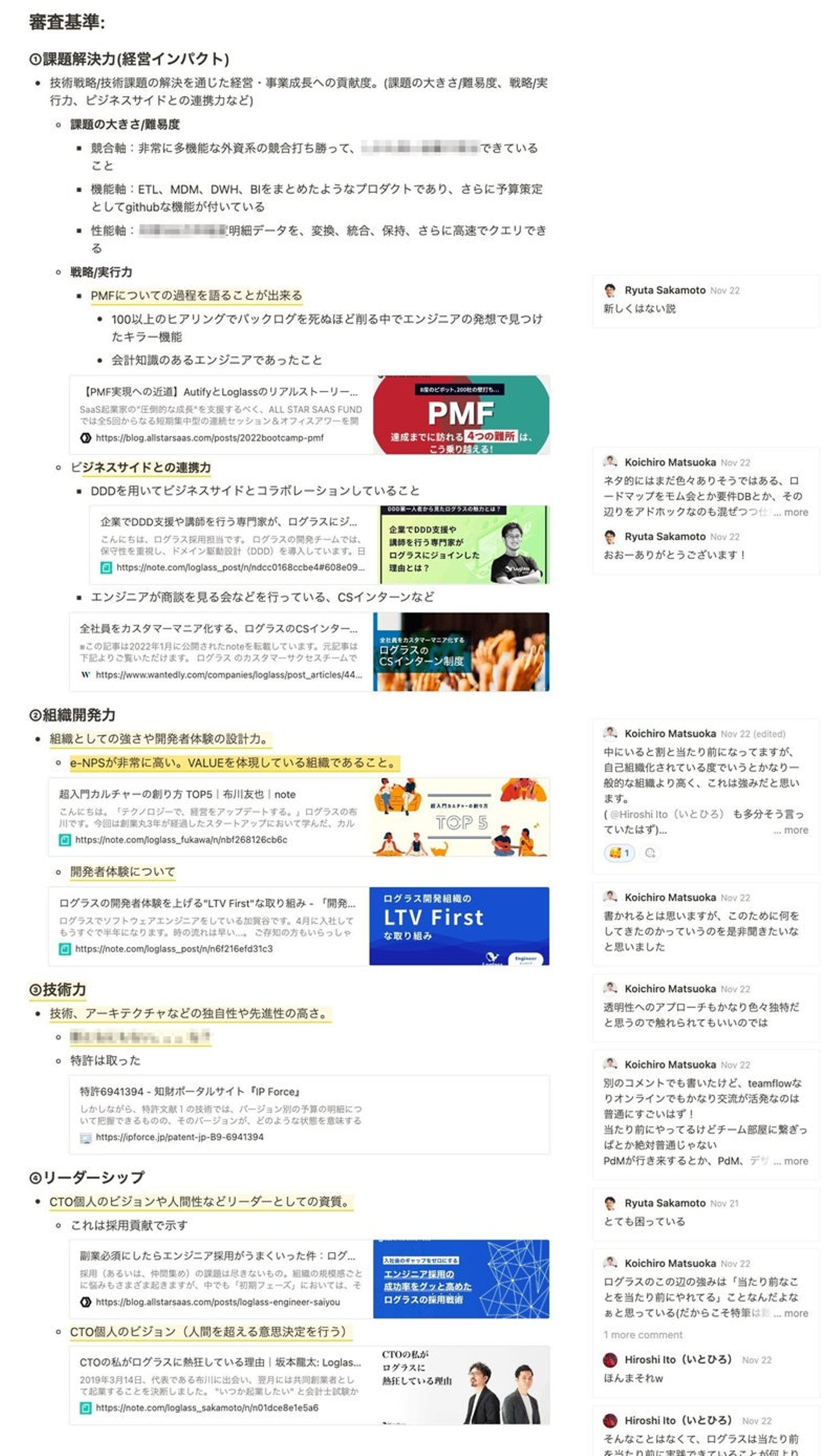 参照:Startup CTO of the year2022| 選考基準 とりあえず、審査基準に対して、愚直にこれまでの発信内容、ログラス社の強み、創業以来3年間積み上げてきたことを精査していきました。