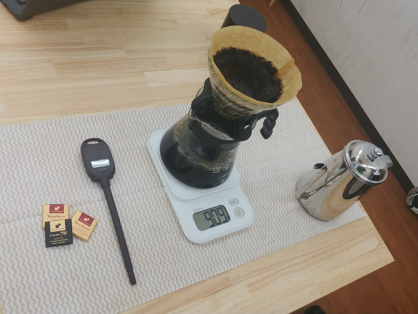 美味しいチョコを添えて、コーヒーのドリップが終了。