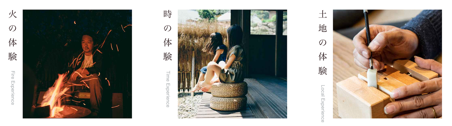 火の体験 、時の体験 、土地の体験と3つの体験をご用意しています。