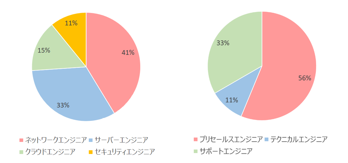 弊社ではネットワークからサーバー、オンプレミス、クラウド、セキュリティなど様々な分野の部署があります。そして、例えばネットワークエンジニアであってもプリセールスや設計、構築、運用、保守などそこからさらにポジションが分かれています。