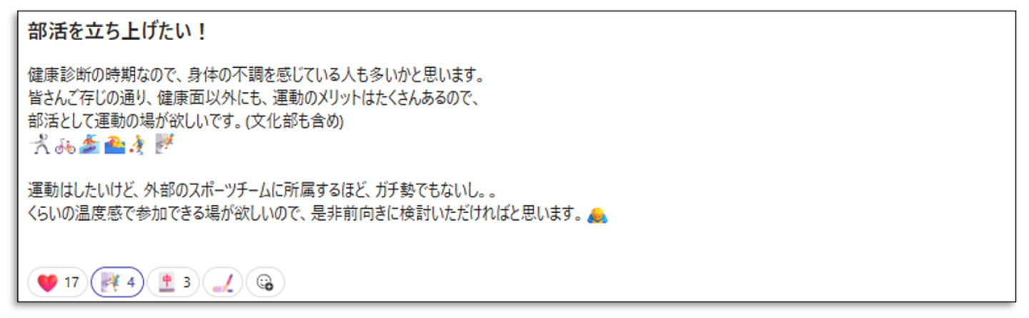 直近で実際に社内制度として実現されたアイデアは、以下のようなものがあります!