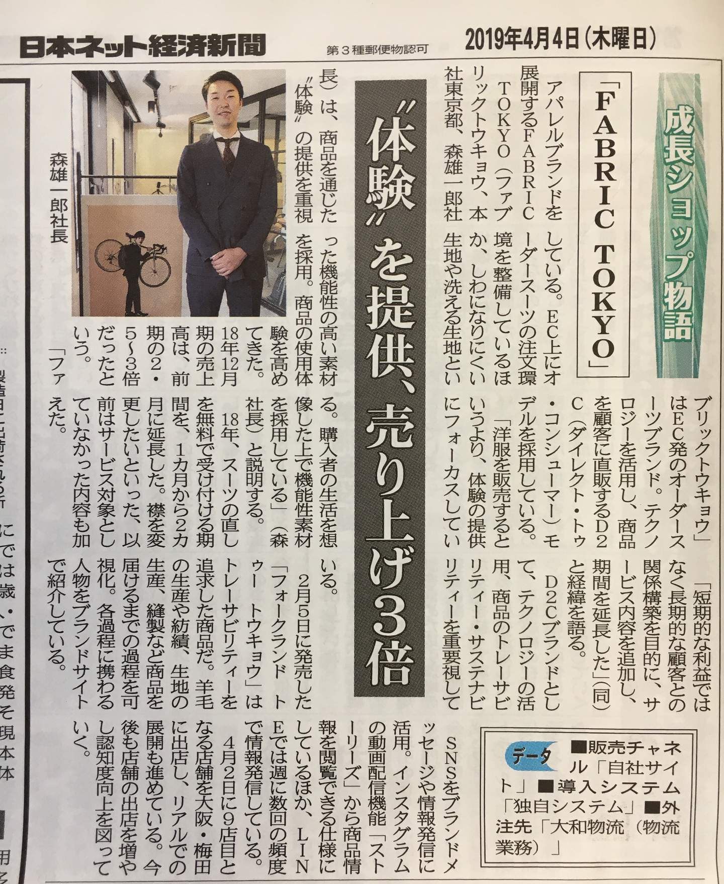 〈FABRIC TOKYO 森 雄一郎 代表取締役社長〉/D2C?で体験?を売る