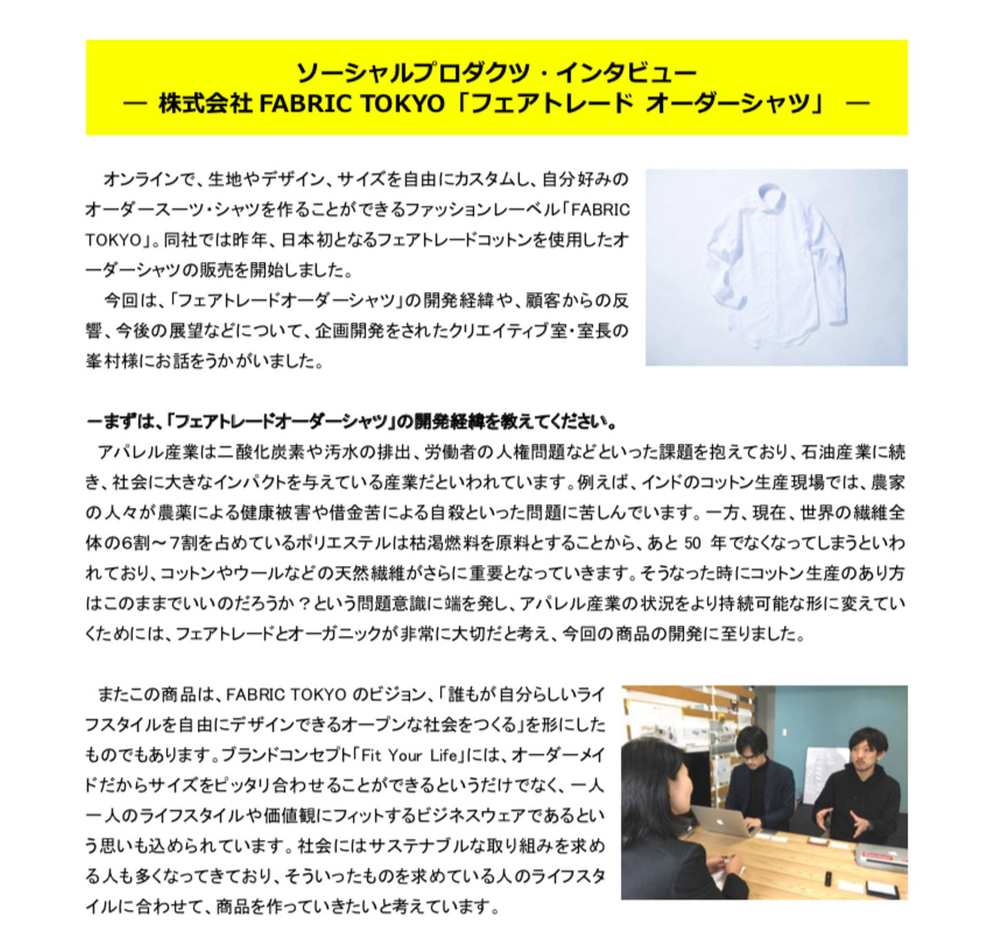 ソーシャルプロダクツ・インタビュー - 株式会社FABRIC TOKYO「フェアトレードシャツ」