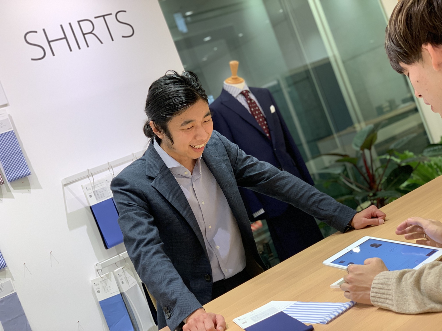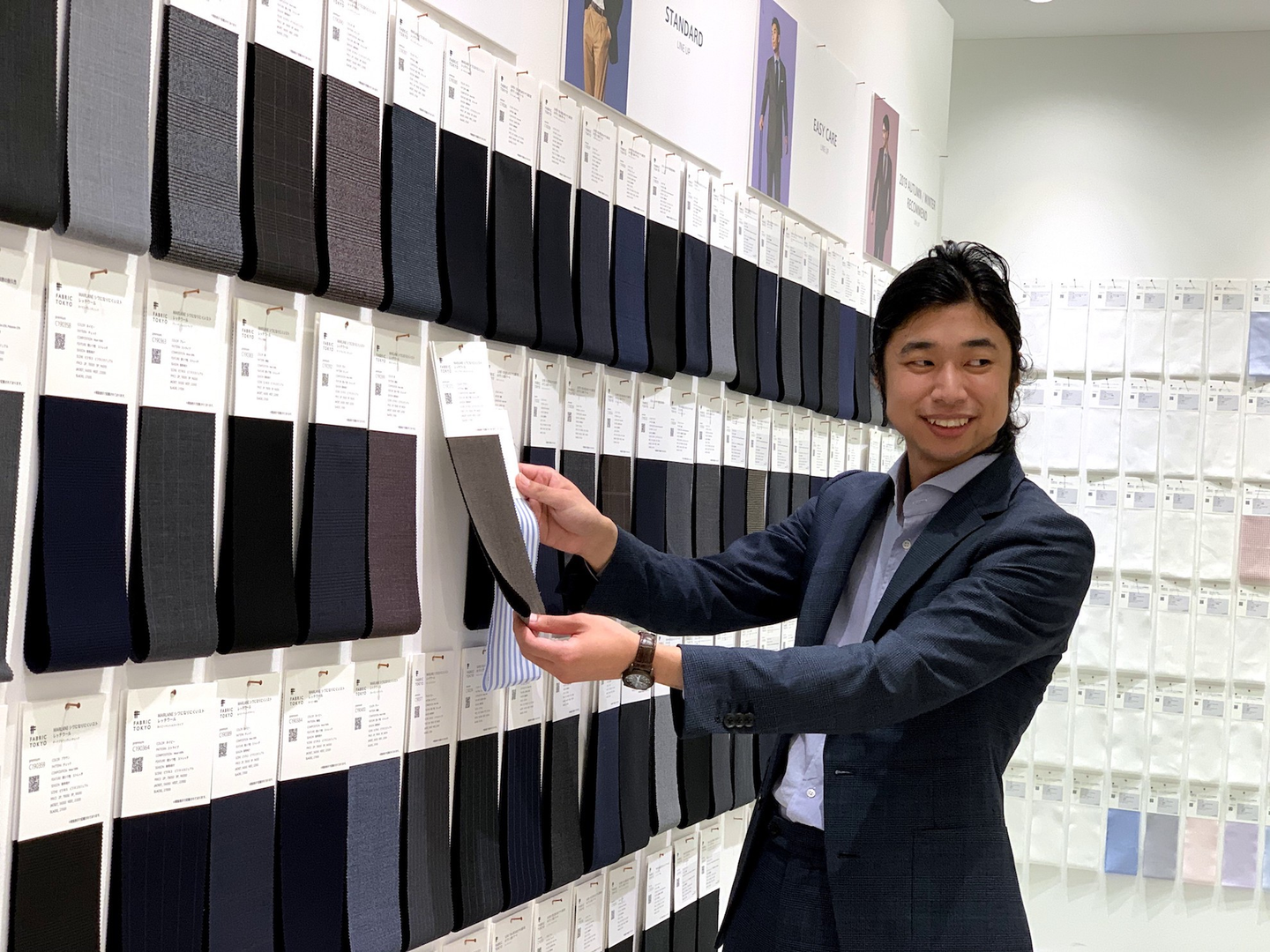 FABRIC TOKYOでは、入社と同時に採寸などの研修があり、その後、店舗に立って実際にお客さまの対応をすることになります。