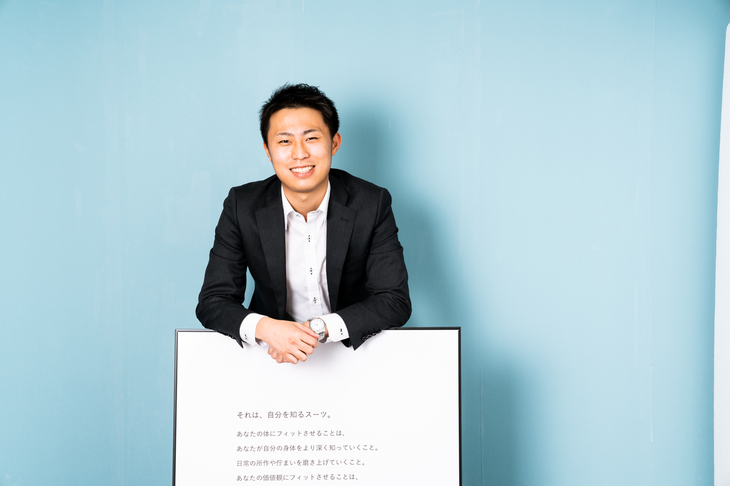 横山:スペインバルでのバイトで、1対1でお客さまと接するのは楽しかったんだけど、誰に何が刺さるかをもっと追求したくなったんだよね。で、いろんな人に刺さる施策を考えるマーケティングに興味を持って、いくつかの会社に面接にいったんだ。その中でもFABRIC TOKYOの「誰もが自分らしいライフスタイルを自由にデザインできるオープンな社会をつくる」っていうビジョンと、「オーダーメイドウェア」のプロダクトにとても共感できた。実は俺、小さい頃すっごく地味で大人しかったんだよね。でも中学後半で服とかおしゃれに目覚めて、自分の世界が広がって、人前に出ることが怖くなくなったんだ。洋服にはすごい力があるんだって気づいた。FABRIC TOKYOが提供しているオーダーメイドのビジネスウェアは、世界に一着しかないもので、着ると自信が持てる。自分が洋服に求めるものが詰まったプロダクトを扱っていたからこそ、FABRIC TOKYOでインターンをやりたい!って思った。もしマーケティングの募集じゃなくても、ここでインターンやってたと思う。