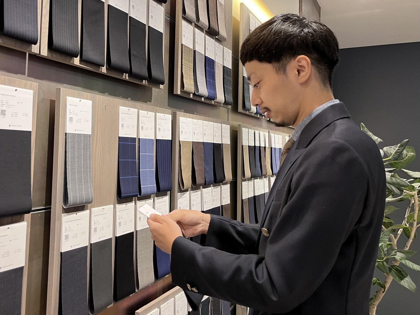 現在はコーディネーターとして店頭で働き、お客さまにオーダーの魅力や一人ひとりにあった生地のご提案などをしています。