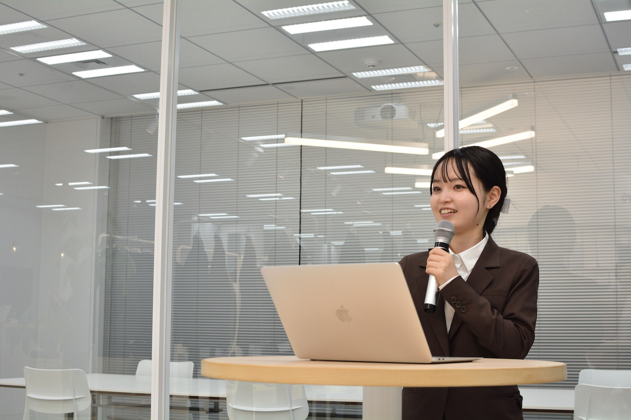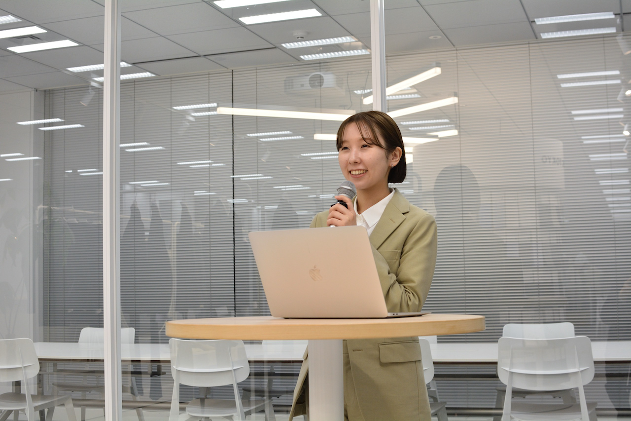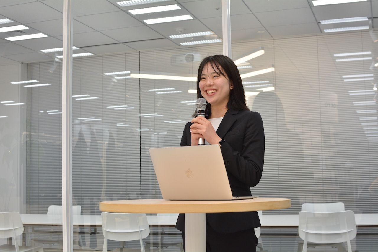 小川さんは、新卒生のプレゼンテーマ決めや、当日に使用するスライド作成を担当。新卒生にも参加する先輩社員にとっても良い時間にすることを意識し取り組んでいました。