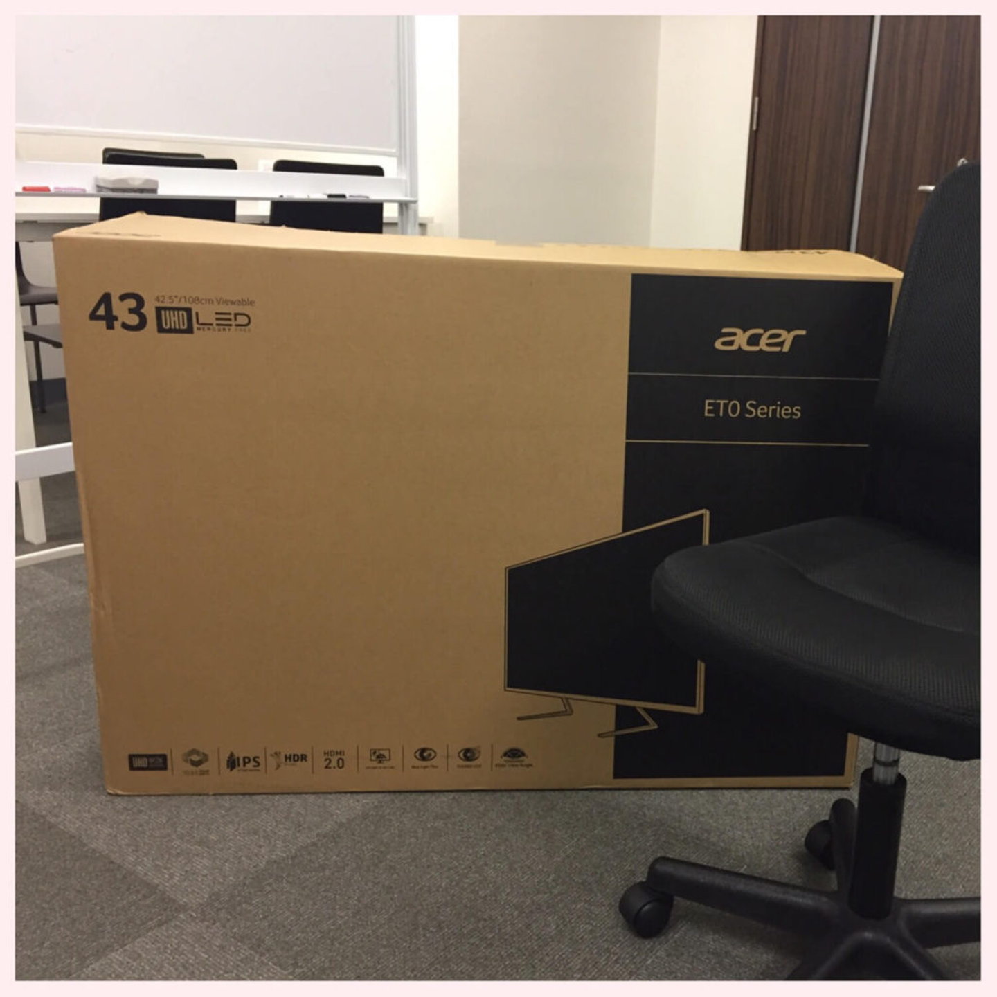 というわけで、43インチディスプレイをポチってみた代表。もしこれで使い勝手がよかったら、社員全員43インチにしてもいいんじゃないかとのこと。配送当日、宅配業者の方から「今から持って行ってもいいですか?」と事前確認の電話。どんなサイズなんだろうか、期待が高まります。