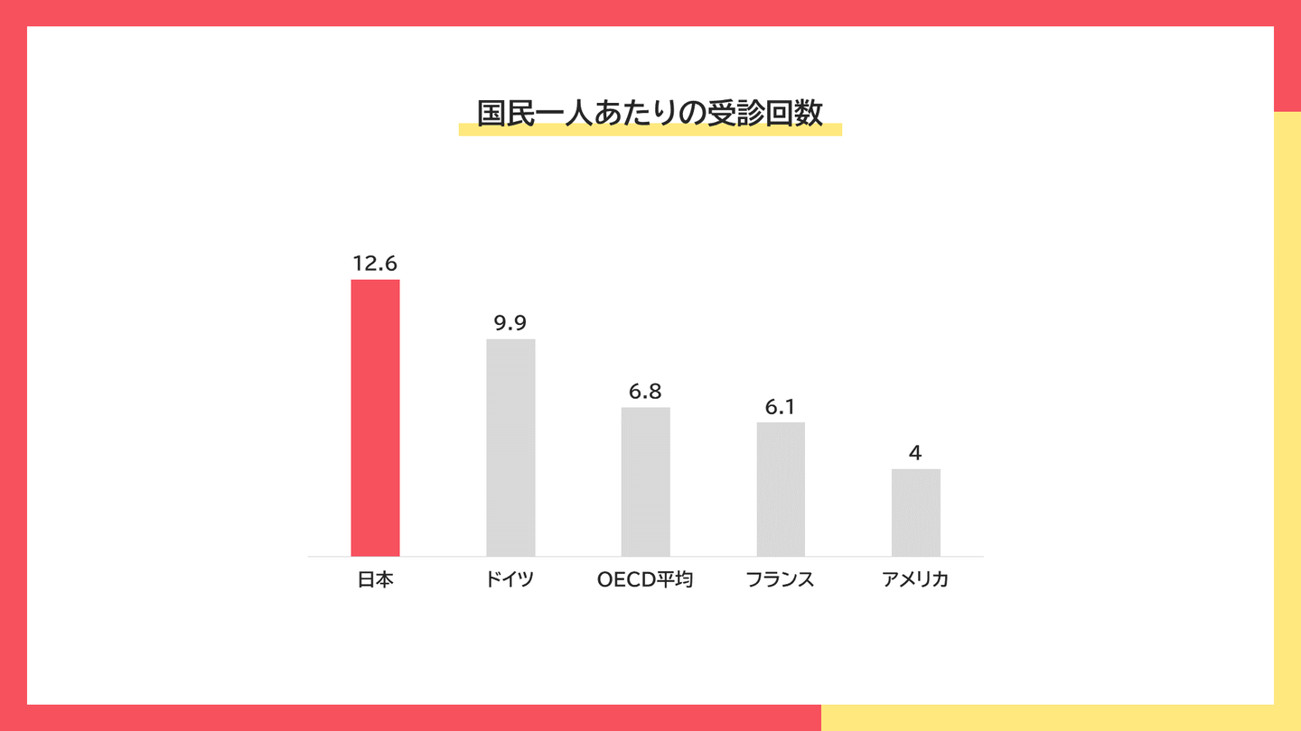 そうした制度もあり、国民1人あたりの受診回数は諸外国と比較しても数倍になっています。