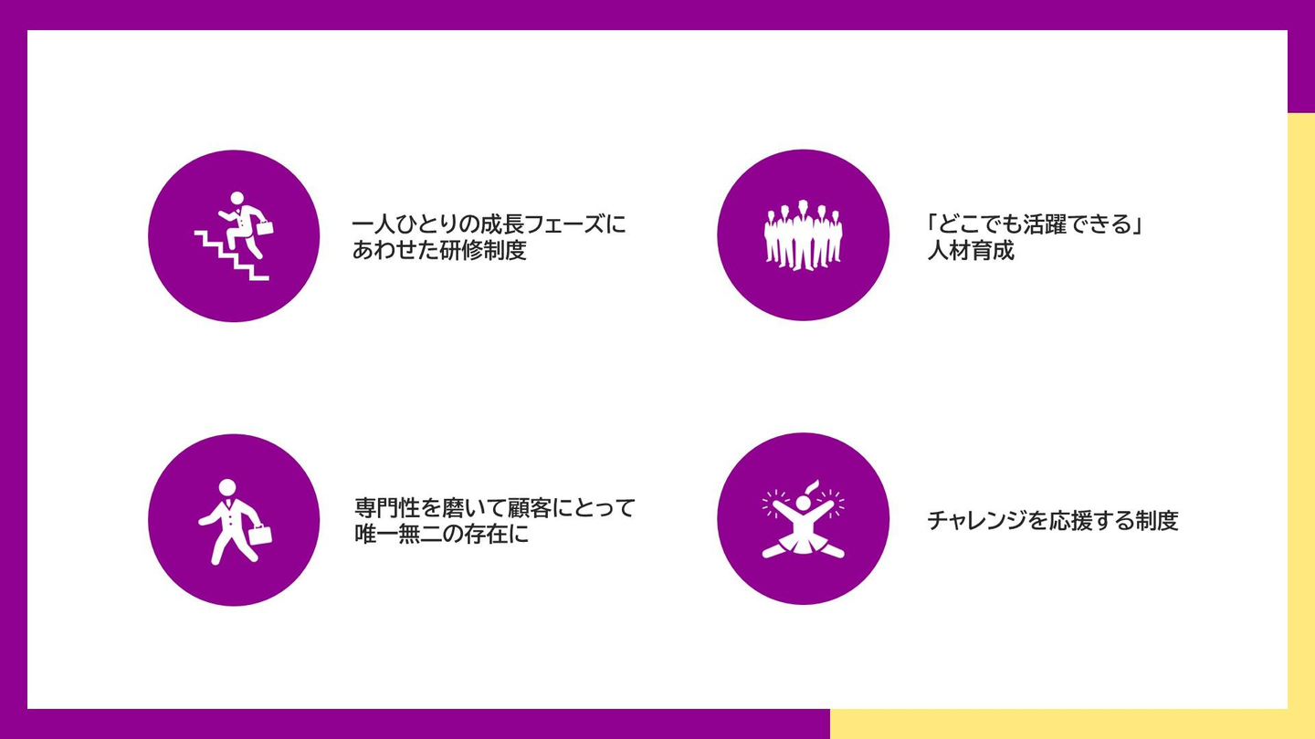 1.一人ひとりの成長フェーズにあわせた研修制度