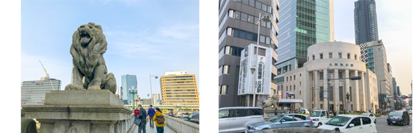 北浜駅周辺は、大阪金融取引所などもある経済・金融の中心地です。