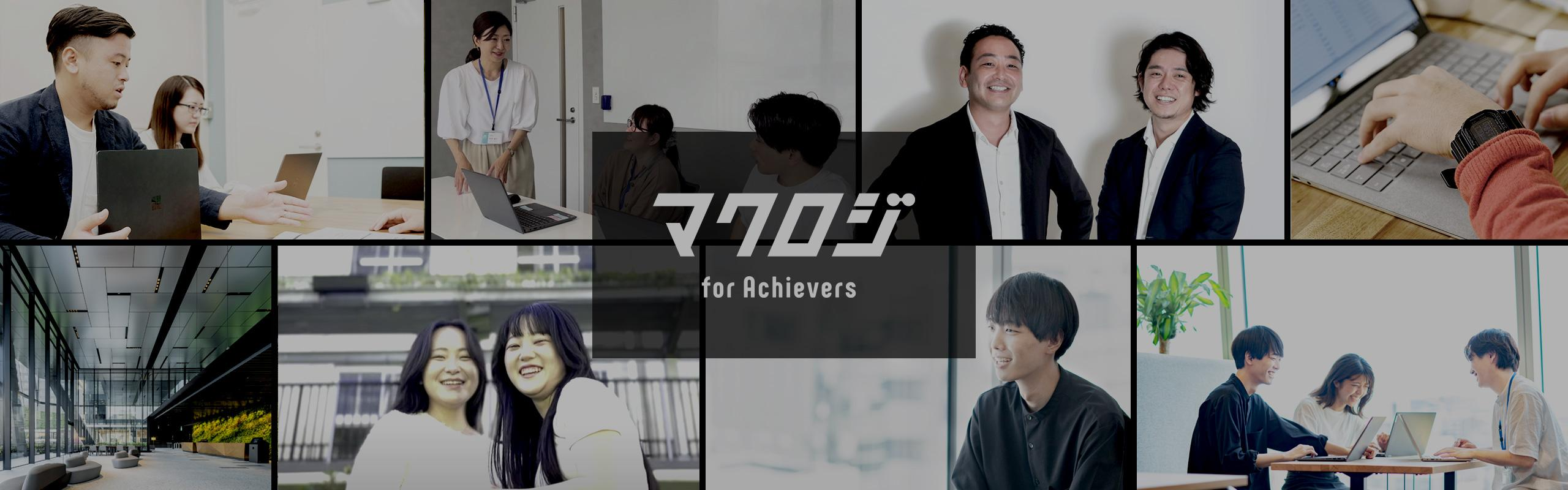 【for Achievers】 マクロジはすべての「Achievers」を応援しています。 Achieversとは、これから“なにかを成し遂げたい”人たちを指します。 お取引いただいているクライアント、マクロジで働いているメンバーなど、企業に関わる全ての方々にそれぞれのビジョンや目標があります。 私たちは、そのビジョンを達成させるためにリソースやノウハウを惜しみなく提供することで、選択肢と可能性を提示し、夢と目標をともに追い続けます。
