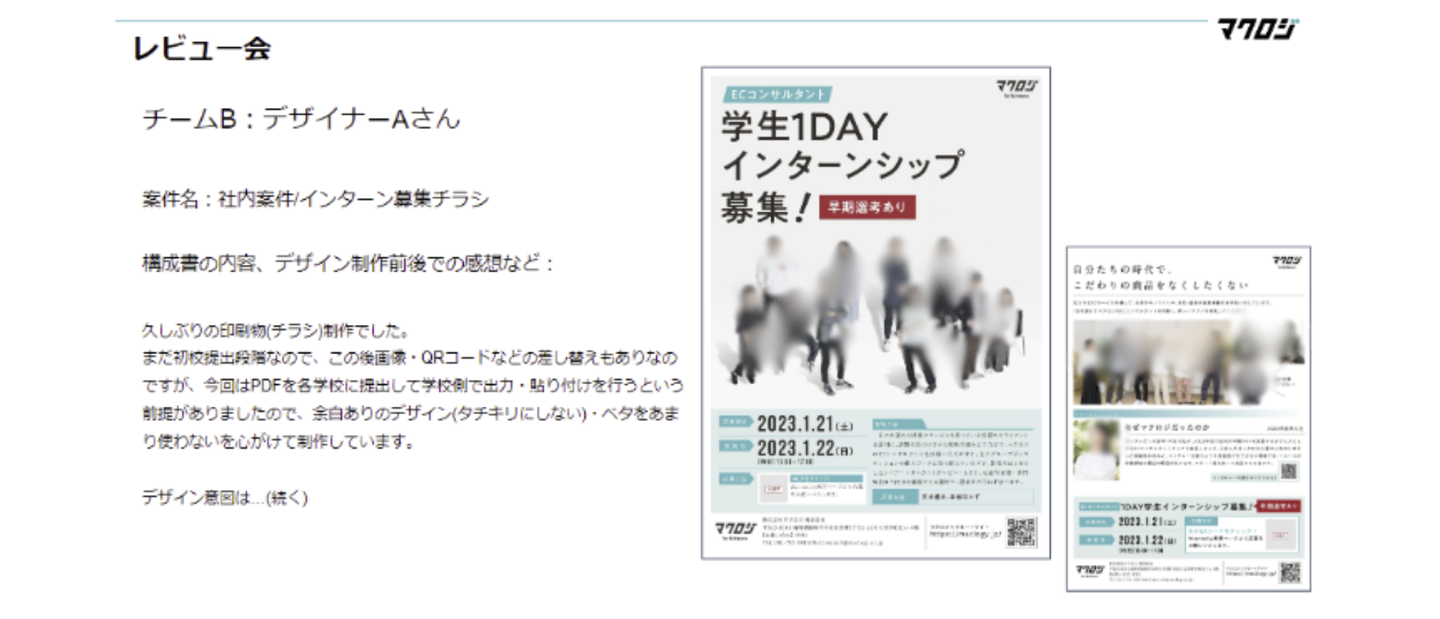 デザイナーCさん「●●なデザインからマクロジらしさが感じられ、学生目線で参加したくなるようなシンプルかつ分かりやすいデザインですね!」