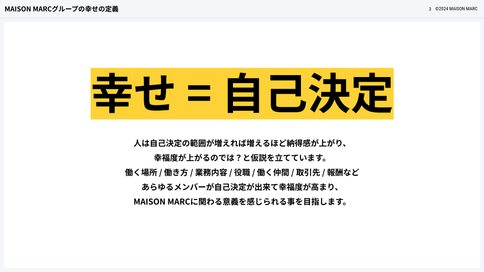 いわばMAISON MARCに参画する全員が共通で持つ同じ価値観にしたかったためです。